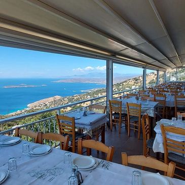 Perched over the Aegean, this hilltop taverna offers not just food, but a view like no other. Rustic charm, beautiful sunset vistas, and heartwarming Greek hospitality.